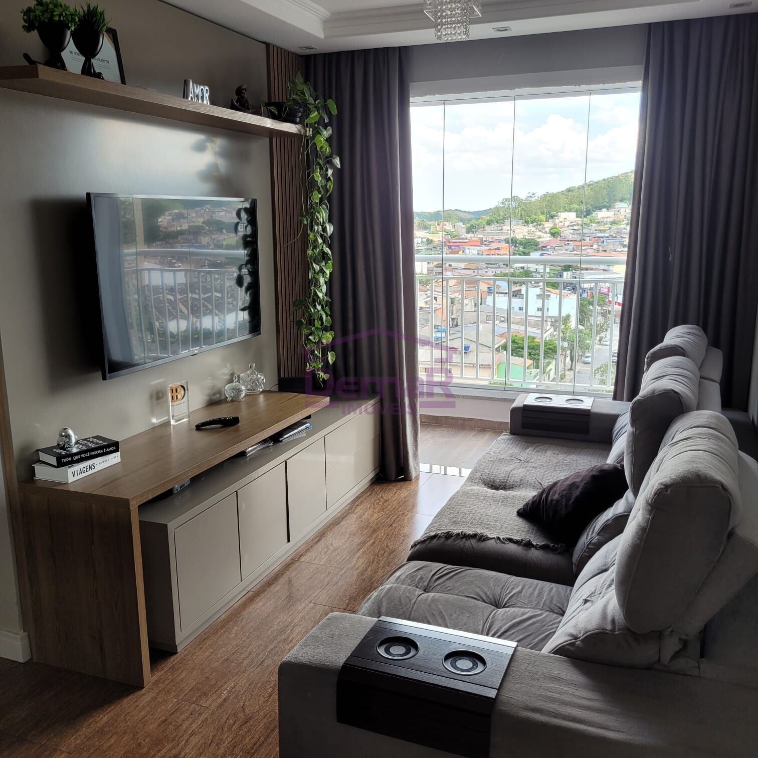 02 dormitórios sendo o de casal planejado, sala planejada, cozinha planejada, sacada fechada com vidro, wc, lavanderia e 1 vaga de garagem.